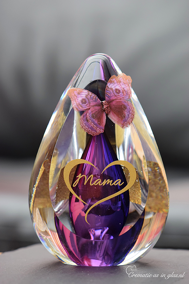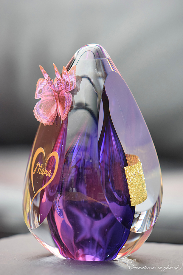 After your order I will contact you, which name may be placed on the urn. If you have any questions in advance, please email info@crematieasinglass.nl. Maximum 6 letters can be placed on the urn