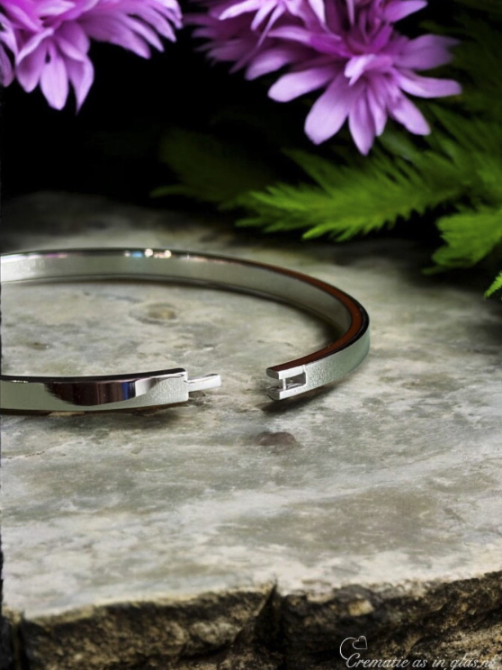 Thanks to the oval shape of the bangle, the ashes bead and charm remain perfectly in place and always stay on top of the wrist during wear.