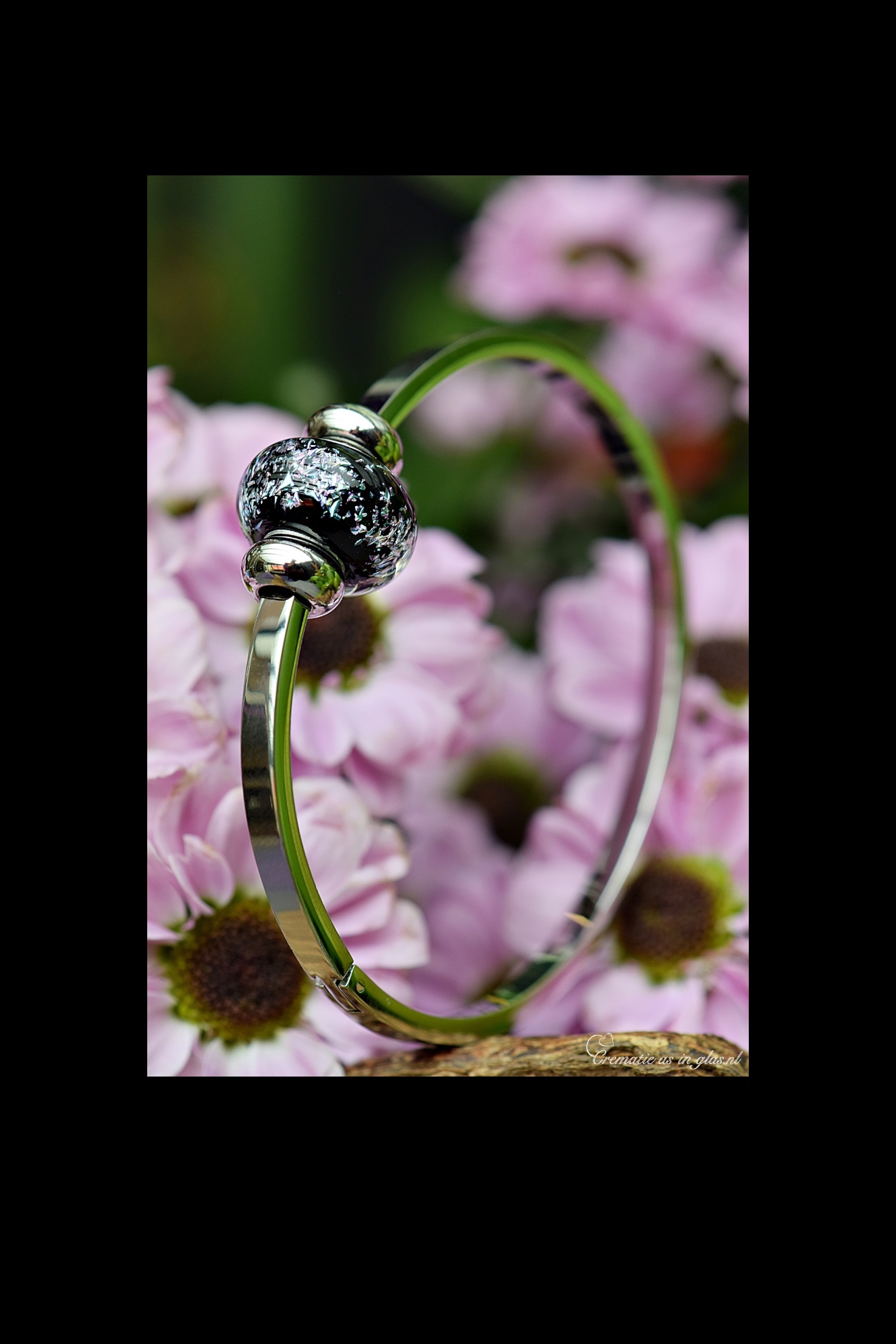 Memorial bangle bracelet with invisible ashes in black shimmer glass