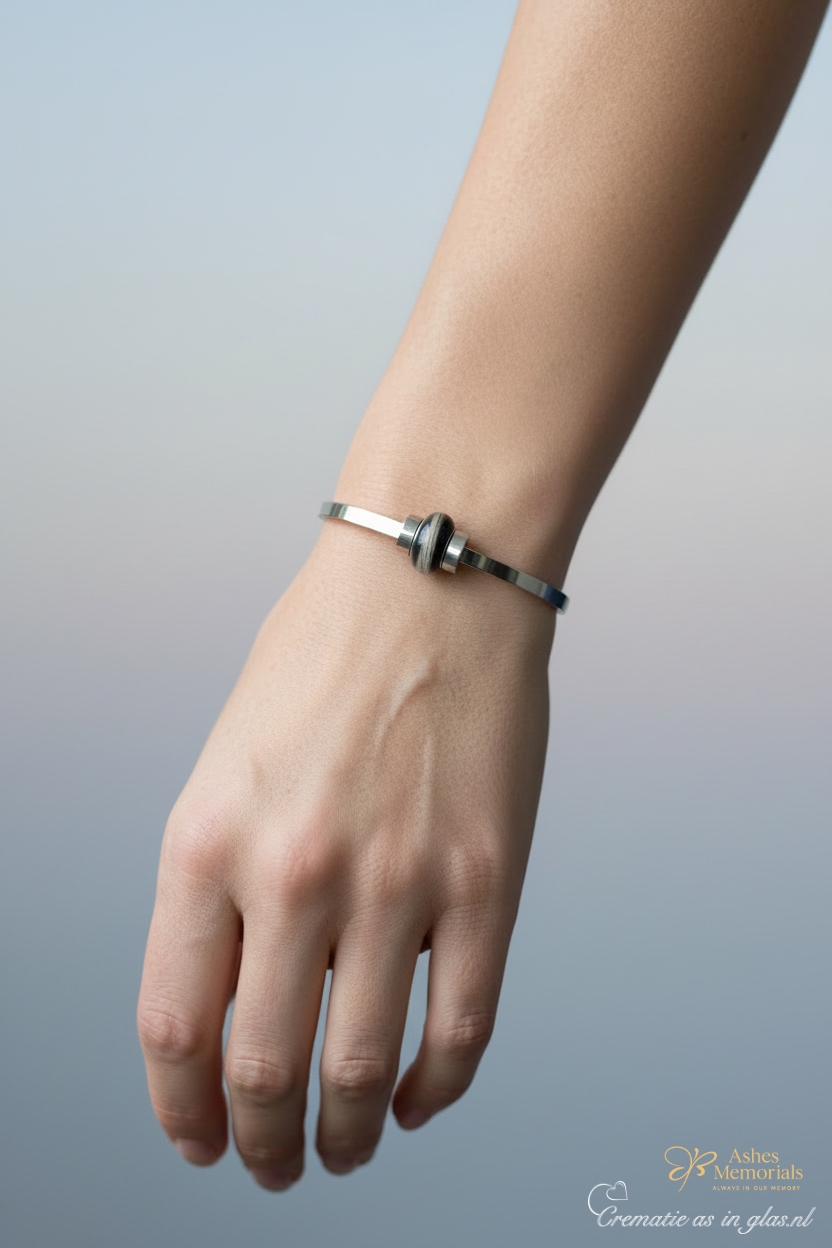 A women’s memorial bracelet with a lock of hair set in a black bead is a beautiful and personal way to keep a loved one close. This subtle remembrance bracelet for women combines elegance with emotional value and is specially designed for those who wish to wear a tangible memory.