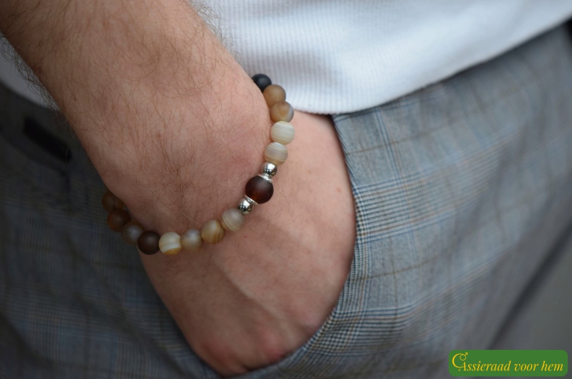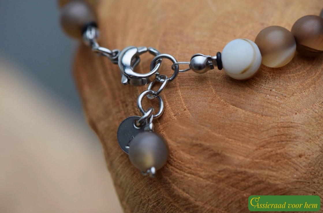 The ashes bead is combined with 8 mm natural Banded Agate gemstone beads. These stones have been scientifically examined by Naturalis and are confirmed to be genuine, untreated natural stone. They have only been cut and polished, without any further treatments or colouring.