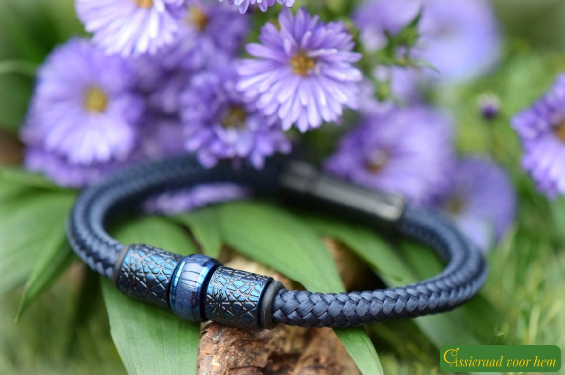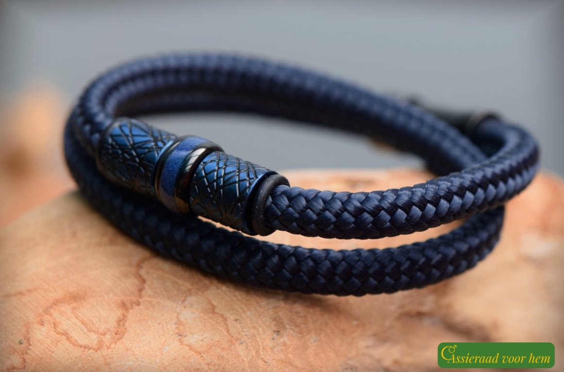 The Sail-Rope bracelet features a strong 6 mm blue cord with a very flexible and comfortable fit. Sail Rope is a tightly braided, high-quality polyester material, smooth in texture and pleasant to wear. Thanks to its durability and strength, it is also commonly used in sailing gear.