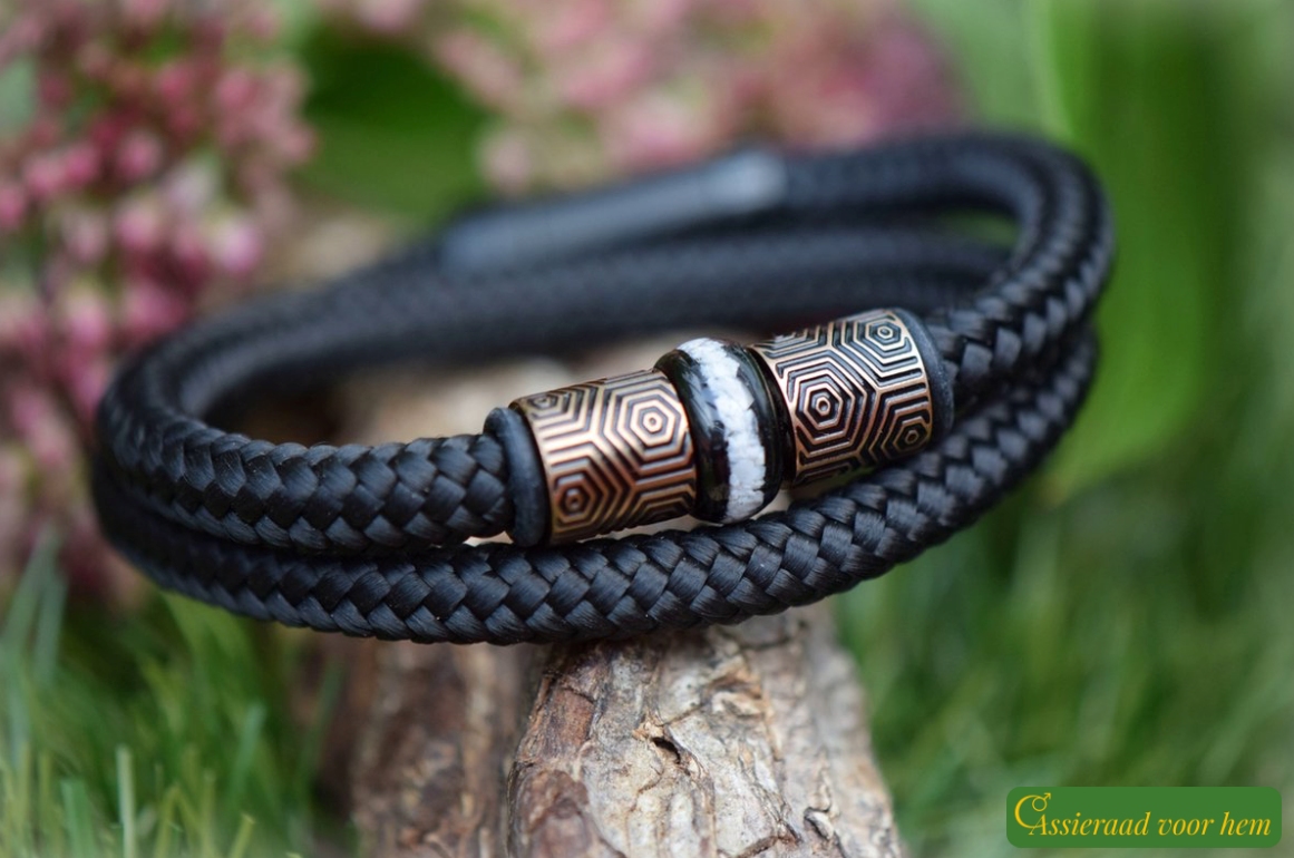 The Sail-Rope bracelet features a strong 6 mm black cord with a very flexible and comfortable fit. Sail Rope is a tightly braided, high-quality polyester material, smooth to the touch and pleasant to wear. Due to its strength and durability, it is also commonly used in sailing.