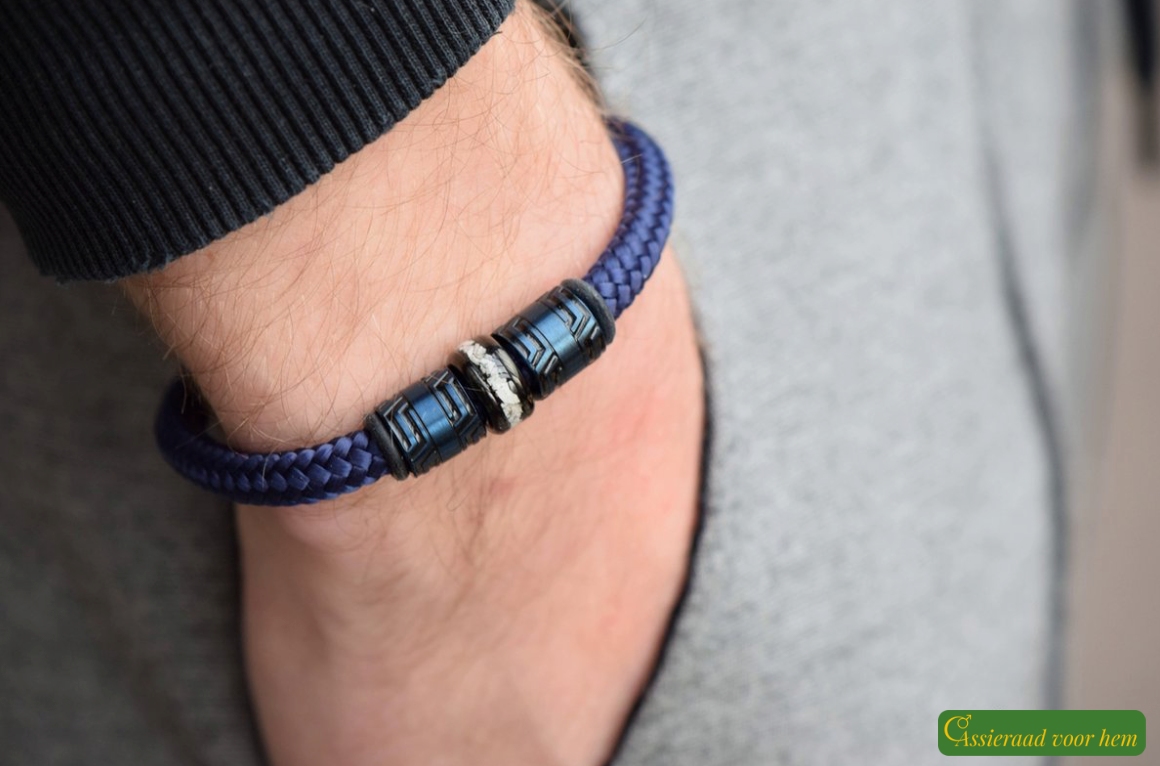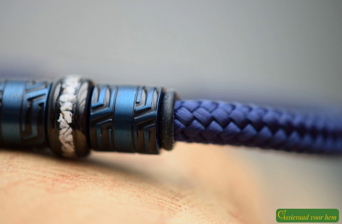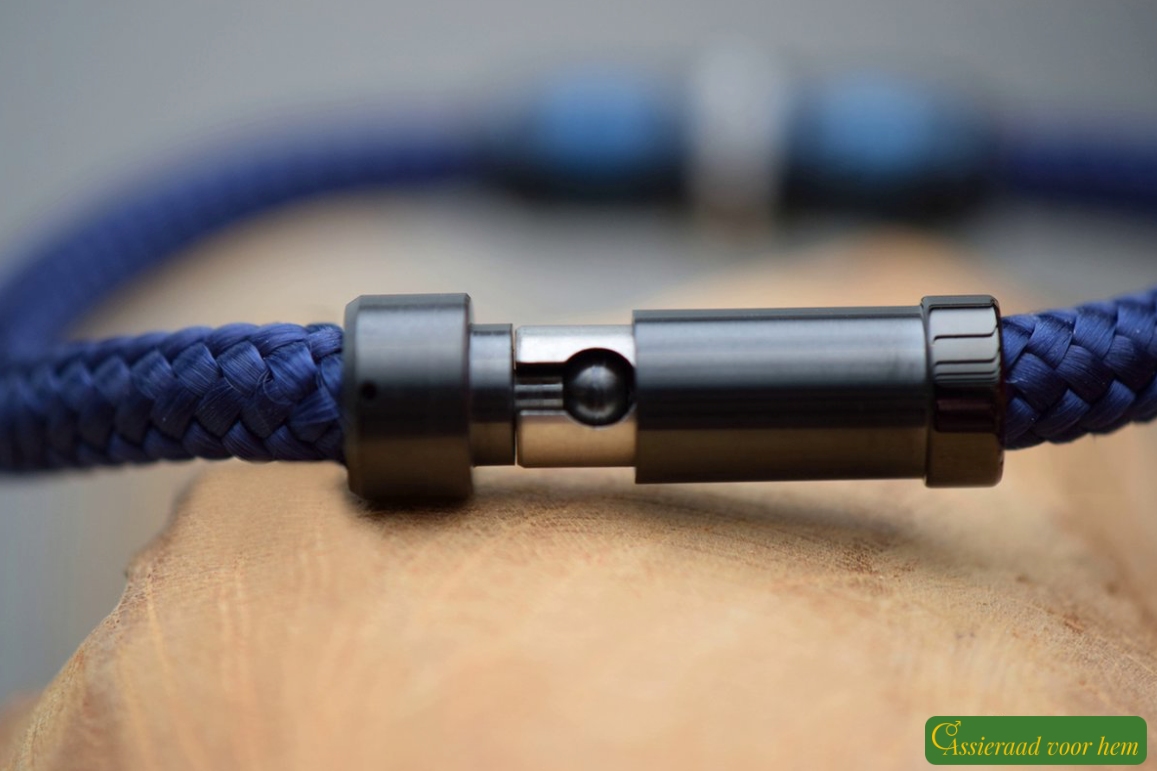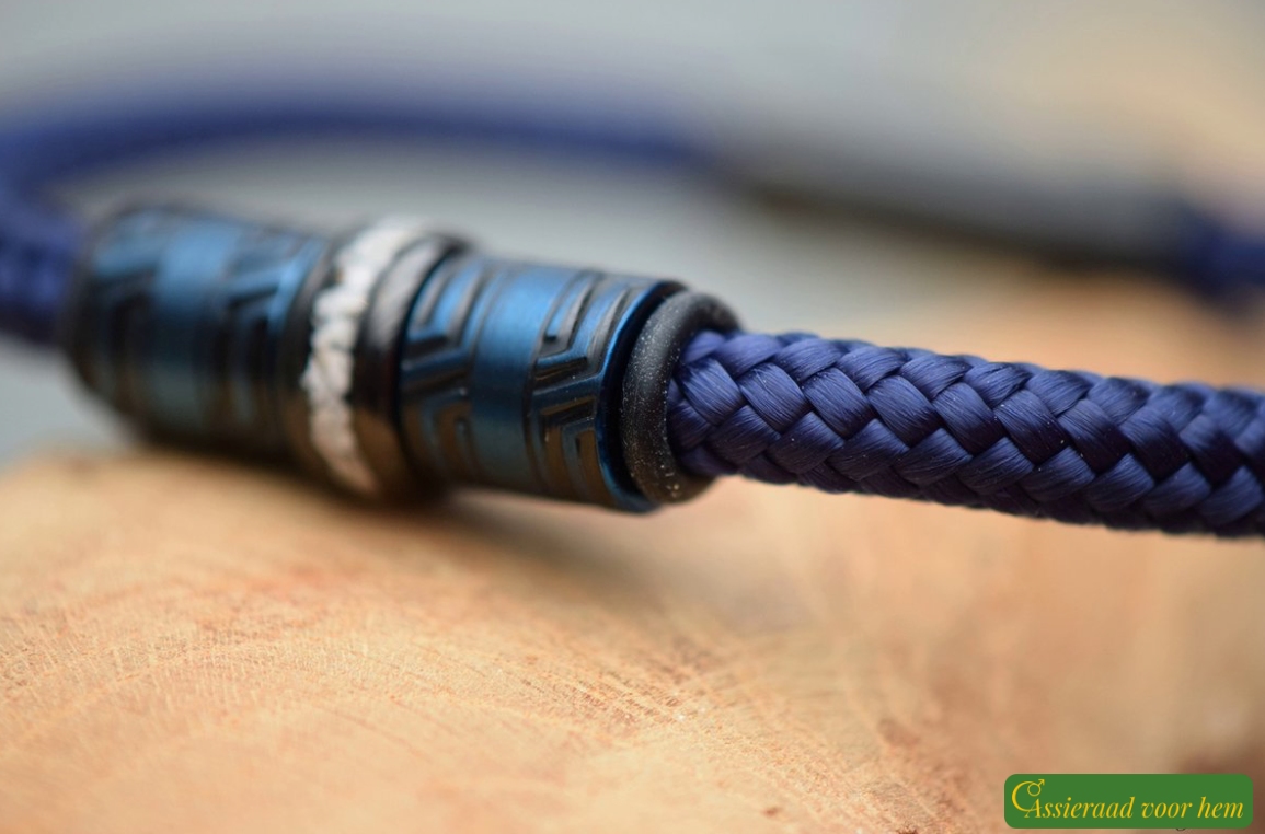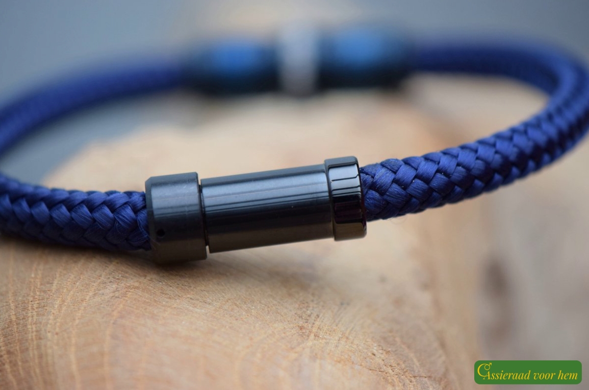 The Sail-Rope bracelet features a strong 6 mm blue cord with a flexible and comfortable fit. Sail Rope is a tightly braided polyester material, known for its strength, smooth texture, and durability. Thanks to these qualities, it is also widely used in sailing.