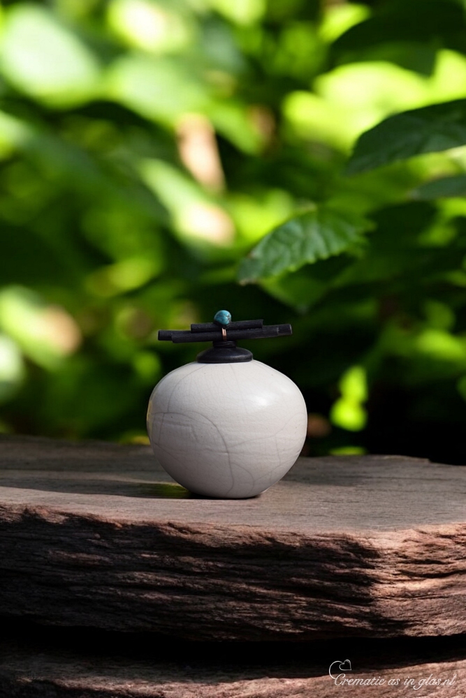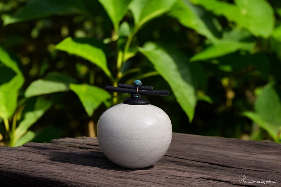 Ceramic Ball Urn – Raku Fired, Contents: 100 ml – cream colour-Suitable for a small partial ash destination of an adult
